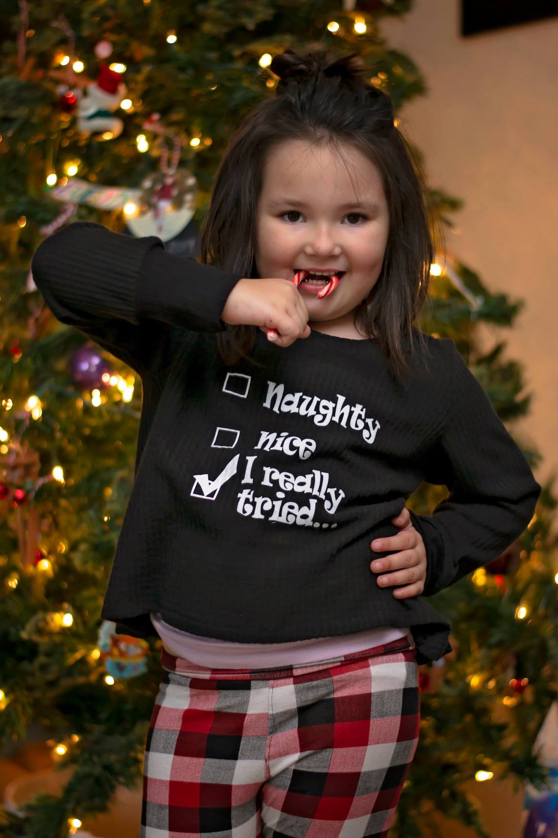 We've had Elves hard at work sewing up some adorable Split Hem Tees of their own. Check out Rachel's completely perfect version using one of our past Free HTV files (no code needed). The cuteness!!!