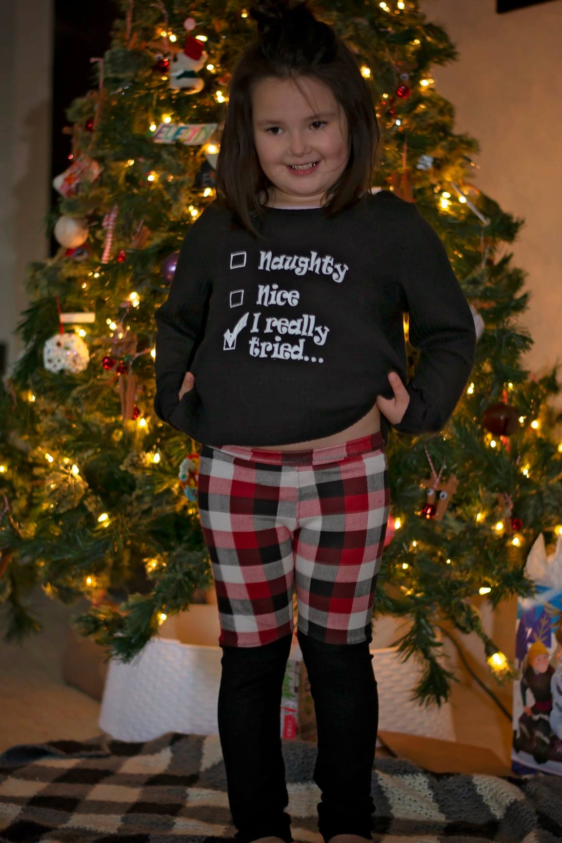 Did you happen to catch our elf Rachel's adorable 12 Day Leggings with the Leg Warmer Option!?!?! She paired them up with the split hem tee for the cutest PJs that could totally be used for daily wear....yeah that fine line between PJ's and 'real' clothes doesn't really exist for kids, HA! (*her other daughter is sporting the Free Kids' PJ Pants)