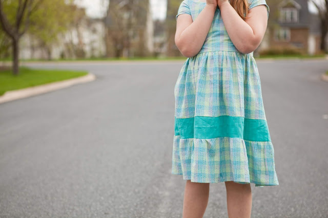 Let's break down the looks starting with Mack. So this is what seven looks like....hmmmmmm, I still see my baby girl, but I'm seeing a whole lot of the 17 year old she is destined to be. Heaven help me as I raise this girl who will, no doubt, leave her imprint on the world. Mack is wearing the brand new girls dress that is in testing right now. This dress has a million options, but what I love is the classic lines that allow my girl to be seven. The side zipper allows for a great fit without any elastic or big bows. I sewed it up in a sweet plaid in my stash that screamed spring and that my girl looks gorgeous in. Mack spent all day in her dress - singing in the choir, hunting Easter eggs, and jumping on a trampoline - this is definitely kid tested/kid approved. I can't wait to get this pattern in your hands, you are going to love it!