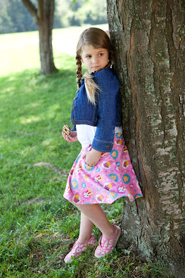 And then we need the perfect layering piece. We live in a climate that can be mid 50's in the morning and mid 80's by the time the kids get off the bus, so simple jackets and sweaters that go with everything are a must. This is the Fashionista Jean Jacket and it will be coming this week for you to sew one up for your own kiddos!