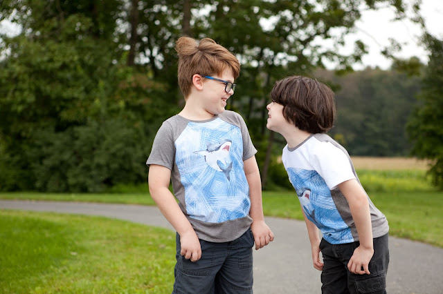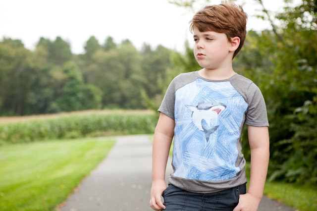 Today, I'm kicking it off with new perfect panel tees for all my kiddos. I designed this pattern to work with kid sized panels which let's my kids show off the things they love - sharks and unicorns of course! These panels are from Think It Fabrics, check out their gorgeous art work and round 3 designs. The back of the shirt wraps around to the front so that there is no side seam under the arm. Grab the pattern all week long for just $5!!!