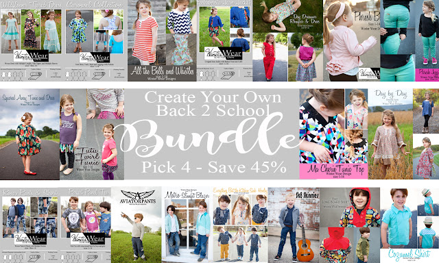 I hope all of these looks inspire you as you are sewing for your kids this year. Don't forget that you can create your own bundle and save 45% when you add any 4 patterns from the Kids Back to School Collection to your cart!!!