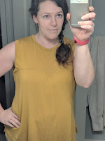 If you are finishing the neckline and/or armscyes with bands like this mustard version, use the following steps to attach.