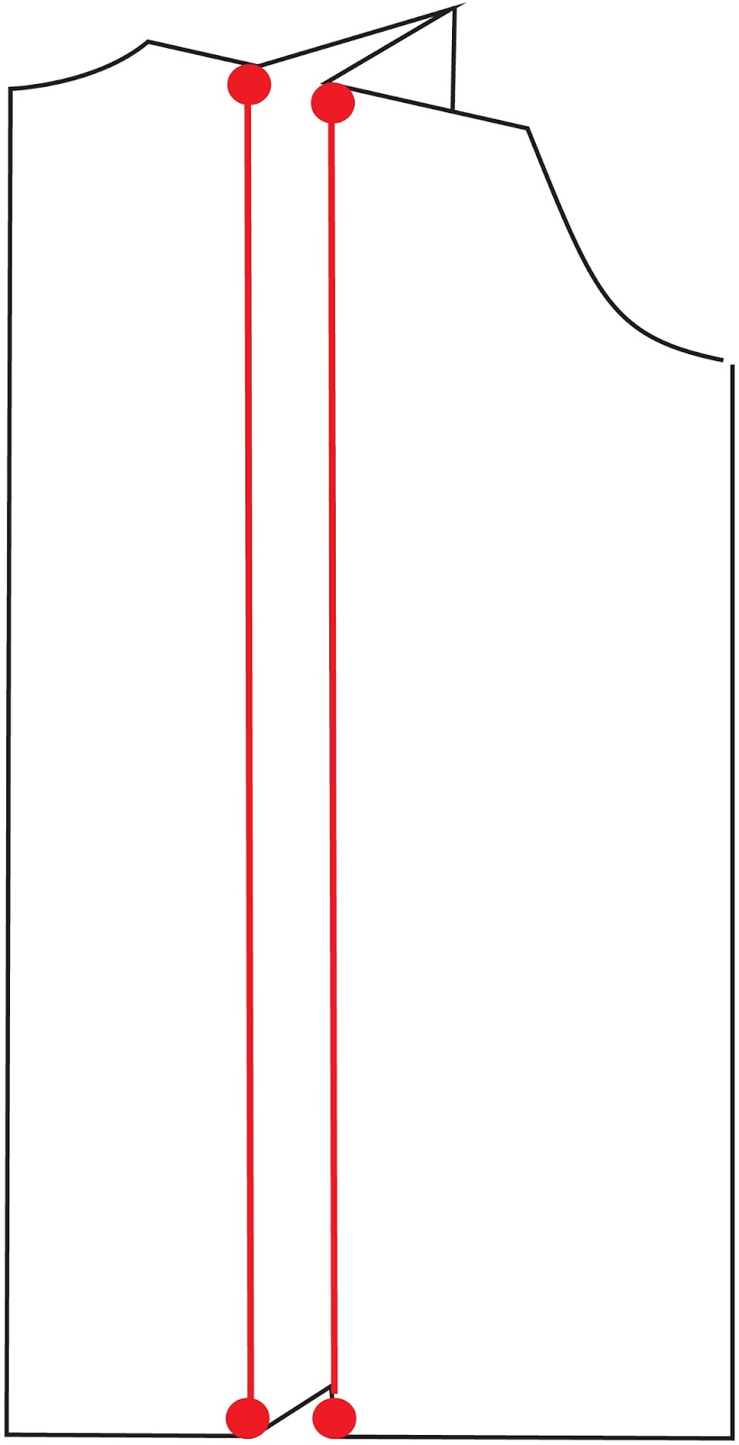 - Take your Front pattern piece and make a mark at the first pleat marking (closest to the neck opening).