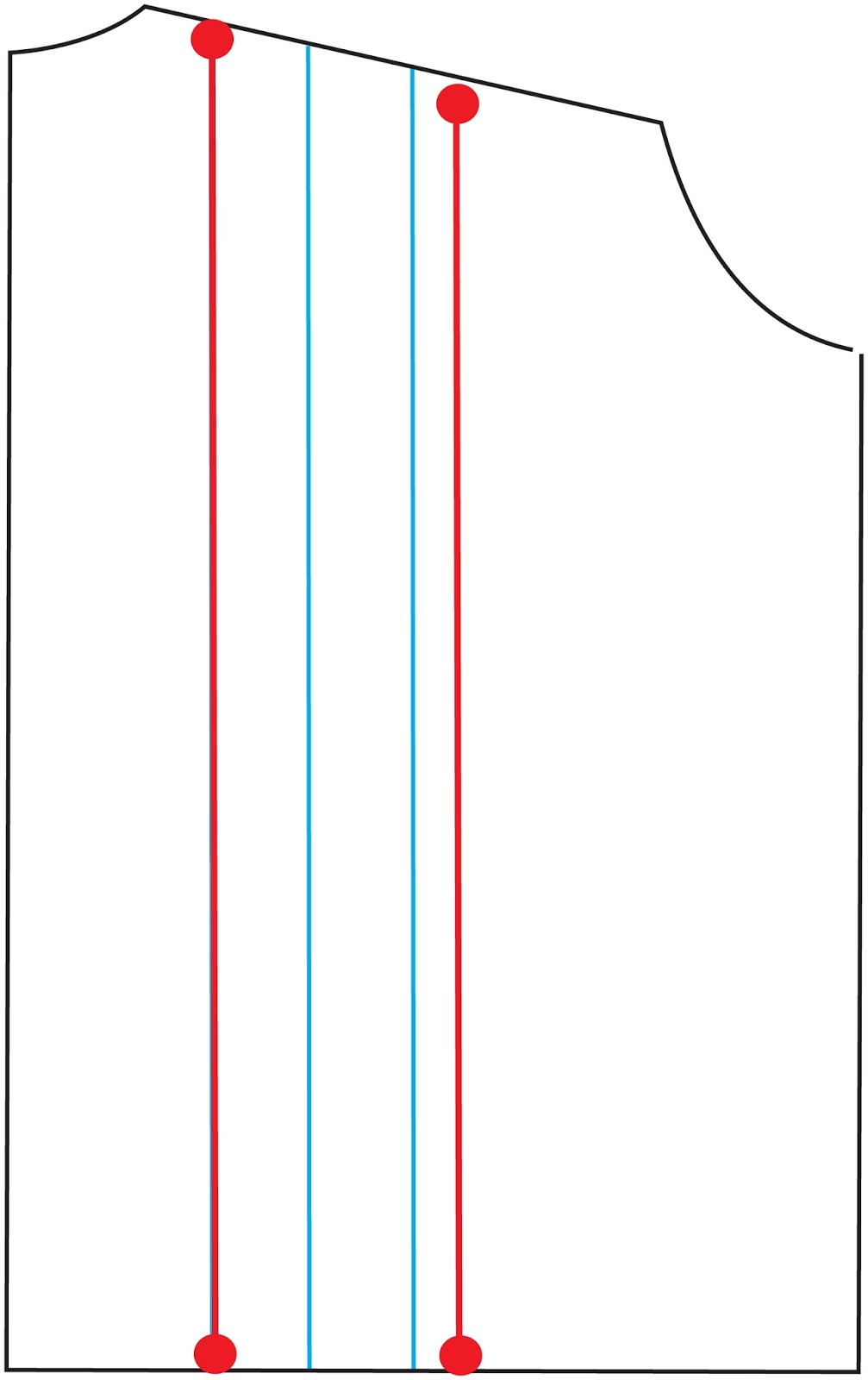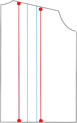 - Take your back pattern piece, measure 1 inch in from center for the pleated back, or 2 inches in from center for the flat back option.