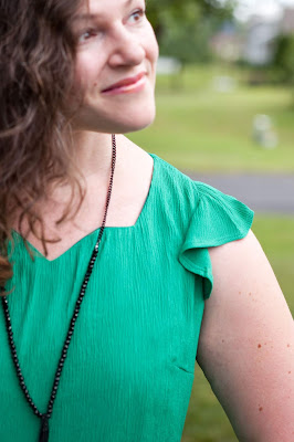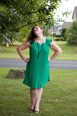 I decided to get creative with my fabric choice on this and go with a solid green crinkle gauze fabric. It is nice and opaque while still being lightweight to beat the summer heat, and I figured that the texture would be flattering and disguise my lumps and bumps. I was also prepared for the fact that this fabric would GROW!!! While gauze is a woven fabric, it has a lot of natural ease and can get bigger as you work with it and as you wear it. To combat the nature of the fabric, I made a 1/2 lining out of a straight quilting cotton.... while it worked, I do not love the lining becasue of my fabric choice. I'm thinking a rayon would have worked better together or even a very stable knit that would have given structure without fighting the main fabric quite as much. All that being said, I still love this dress and it is completely wearable despite the minor things I see as its flaws. And hey, now you can learn from my experimentation!!!!