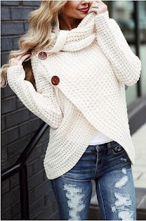 Well, I love the idea of sweaters, but I have 2 problems: 1- I hate to be hot, hate hate hate....so super thick sweaters are just not something I'll wear unless it is -20 outside (and while I live in the north, we rarely get negative numbers). And 2 - I'm already a bit fluffy, so chunky oversized sweaters just make me look like a snowman or the stay puffed marshmallow man...great for Halloween, not so much for feeling confident in my daily life. Any yet, I love this inspiration photo!!!! So what is a girl to do??? Hack it herself of course...in a way she knows will be flattering and will get worn.