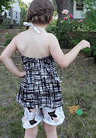 Today our Guest Blogger is Laurie of the Bear and The Pea Atelier - earlier in the week she showed off the Kids' Racing Shorts and the Petit Pan Top as separates, today she has a phenomenal tutorial for how to make a retro romper using the same to patterns - OMSQUEEEEE, I definitely need to make one of these for Mack, This is just adorable!!! Make sure to head on over to Laurie's Blog to get the inside scoop.