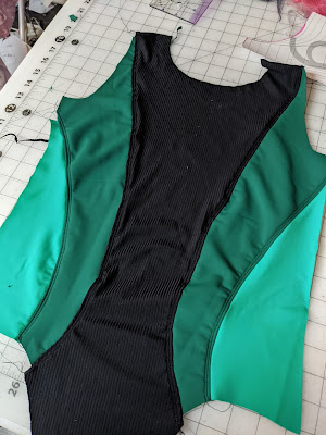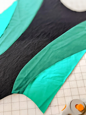 I took our trusty pattern and decided to give it some color blocking flair to get the shades of green and black that her team is known for. I took some pictures through the process so that you could get creative and make your own color blocked suits this summer - it isn't hard, it just takes a bit of planning.