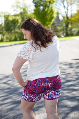 Here is my first pair of shorts - these are a light stretch bottom weight fabric (like a thin twill). I scored this in the red tag section at Joanns a few years ago - perfection for fun summer shorts.