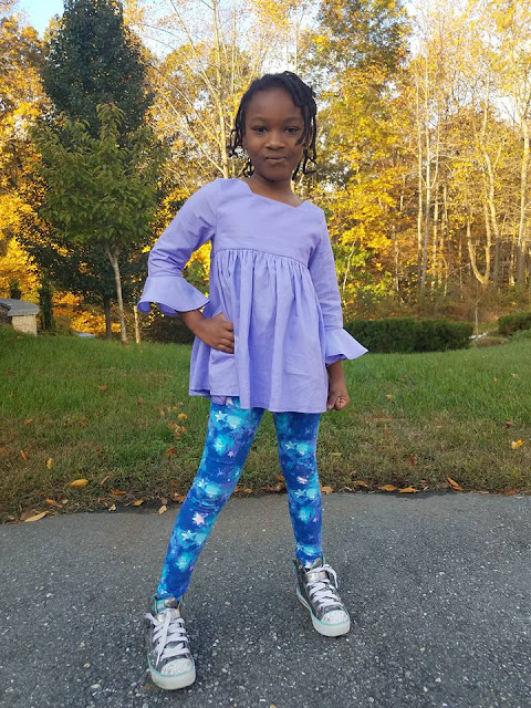 Next up we have the ever talented Nicole Padgett with her purple-iscious mash up. Nicole also took the Squared Away bodice and combined it with the Day by Day skirt and flounce sleeve. I love it just as much here in tunic length as I love it in the dress length above. Look at all the fierce attitude, I'd say this girl loves it too!