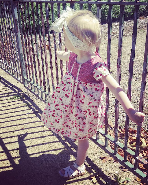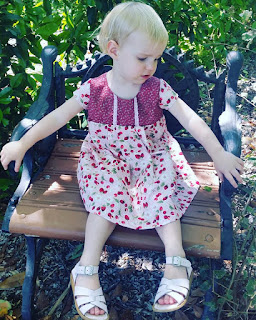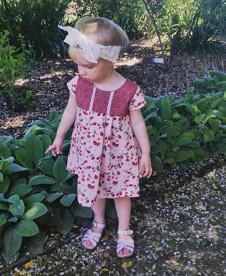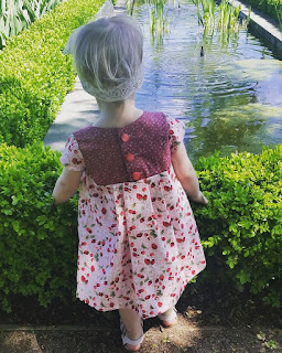 Next up is Christina Ann and just look at this sweet darling. Christina Ann also mashed the Day by Day bodice with the Squared Away skirt. Pleats people, it is all about those sweet pleats! She lengthed her sleeve to long sleeve and added some lovely trim to both the sleeve and skirt.