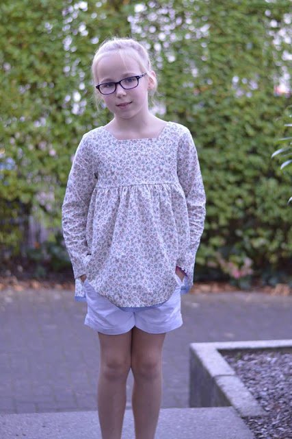 Sandra Schommer decided to Mashup the Squared Away bodice front with the Day by Day tunic gathered skirt. I love the classic elegance of this look in this floral print.