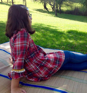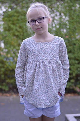 A little bit of delicate trip and an easy hack of lengthening the sleeve to a full long sleeve length finish off this adorable number.