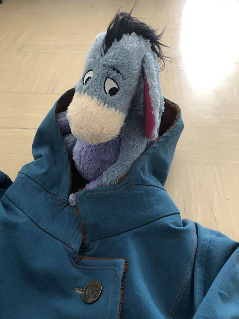 First let's head on up to the north country with Patricia of Sew Far North. Patricia has sewn up the Provence Pea Coat. You're going to have to head on over to her blog to find out why Eeyore is modeling it for our lovely Patricia!!!