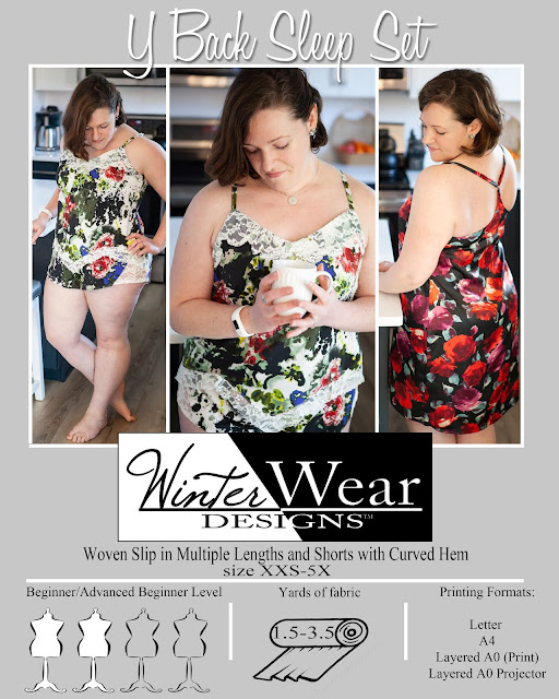 sleep set is designed for woven fabrics. You get both a Y Back Slip in multiple lengths and cute shorties with a curved hem and two rise options. With classic lines, these patterns can be sewn up to create simple looks