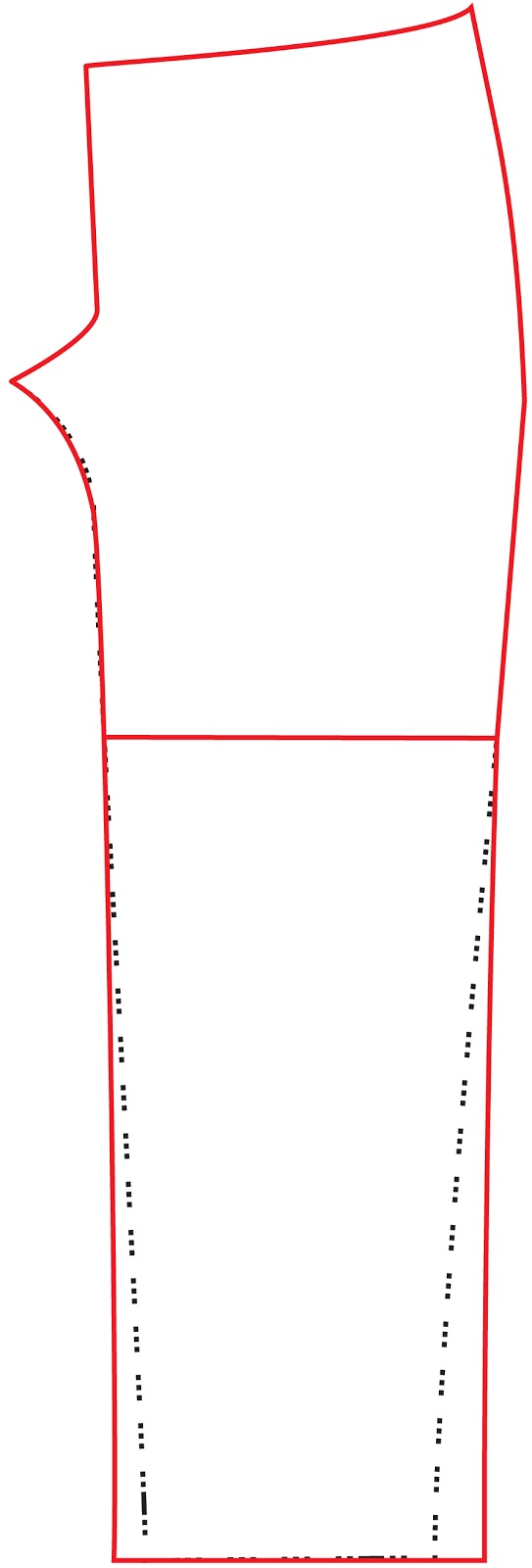 - Repeat this process on the back piece using your front piece to mark at what point you start straightening the leg.
