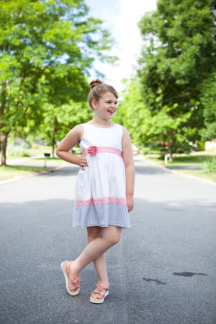 Instead of sewing for myself for this blog tour, I decided to sew for my daughter Mack. Her smile warms my heart, and we are at the tail end of her 'little girl-hood'. Her days of sweet summer dresses are numbered, so I'm going to milk them for all they are worth!!!!