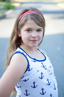 Mack wanted a tank top to go with her new shorts, so I whipped up a quick tank inspired by the women's Omega Pattern, and she loves it. YAY!