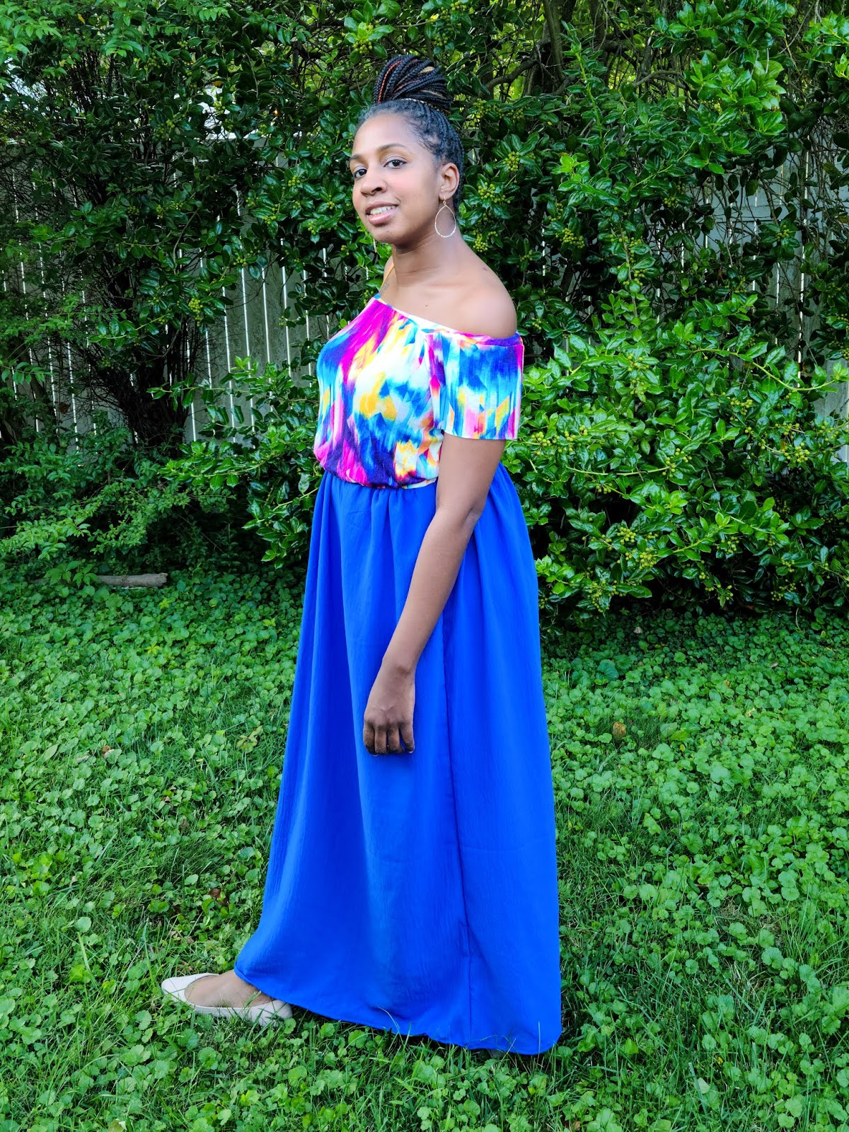 I made the neckline a little tighter so that I could still wear a bra if I needed to with the dress. The pattern was easy to follow and the sizing perfect. I like that I could choose one size for the shirt and a different one for the skirt. The results are beautiful and I can't wait to show it off to everyone. My only regret is that I didn't add the inseam pockets. This dress has me summer ready.