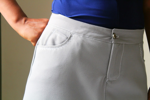 I made my knee length skirt in grey linen fabric with no stretch. It was a fun sew and the instructions for inserting the zipper were clear to follow making it a breeze!