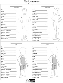 To help you out, I've made some easy to sue measurement sheets for you. There are individual forms for women and kids, a multi kids sheet, and a family sheet that includes measurements for the man in your life - in case you're brave enough to sew for him too! Make sure to say an extra thank you to Jackie Burney for helping me to pull these together to share with you all!!!