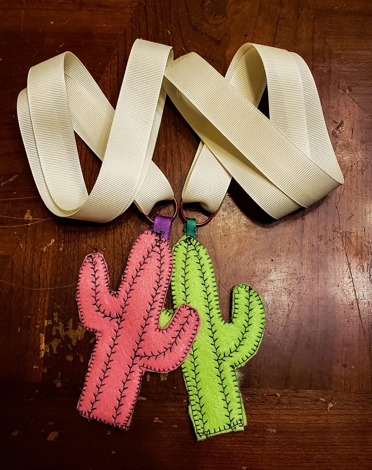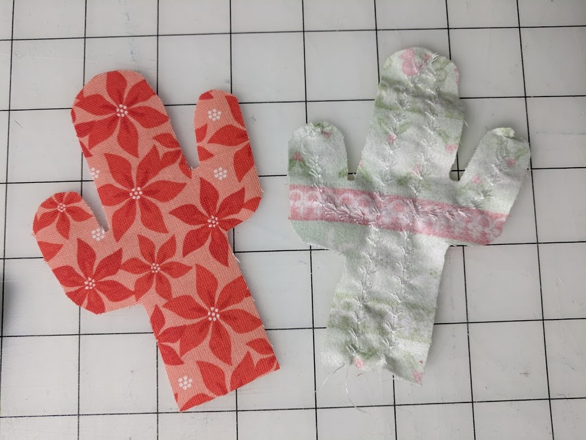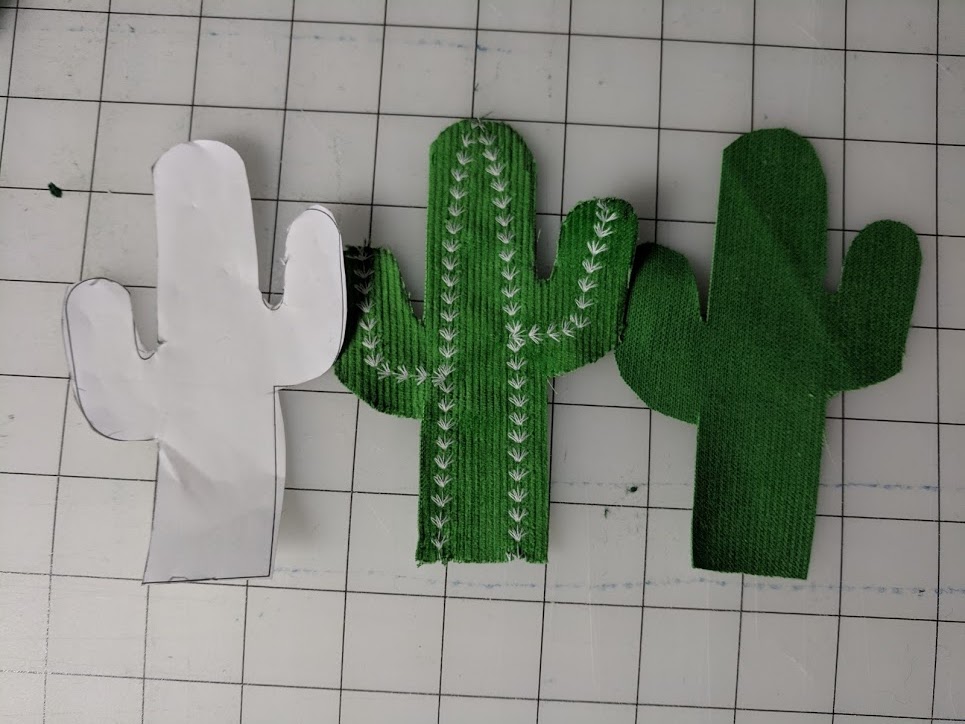 5) Pin in place and sew around the edge with a straight or decorative stitch. I really liked the look of the blanket stitch. *If you want to stuff your cactus, leave the bottom open, fill with some polly fill, and then stitch the bottom closed.*