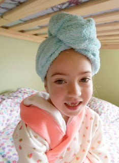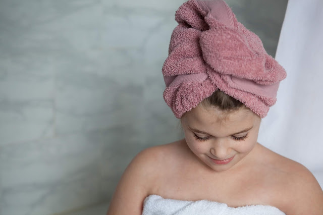 Today I have a pattern for a Hair Wrap that will make a great gift for you and tons of ladies in your life. This pattern is designed for toweling, terry cloth, and microfiber - fabrics that are super absorbent and will help pull moisture away from your hair. Sizing for Adults, Tweens (approx age 8-13), and Children (size approx age 2-7) is included. I am modeling the Adult size and Mack is modeling the Tween (we both have huge heads and a lot of hair, HA!).
