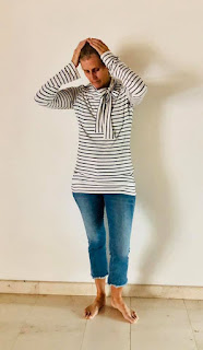 This pattern is a knit semi fitted pattern that will work with all that fabric you've been hoarding. You can make this pattern in all one fabric, or use the optional front yoke to color block and mix fabrics to your heart's content.