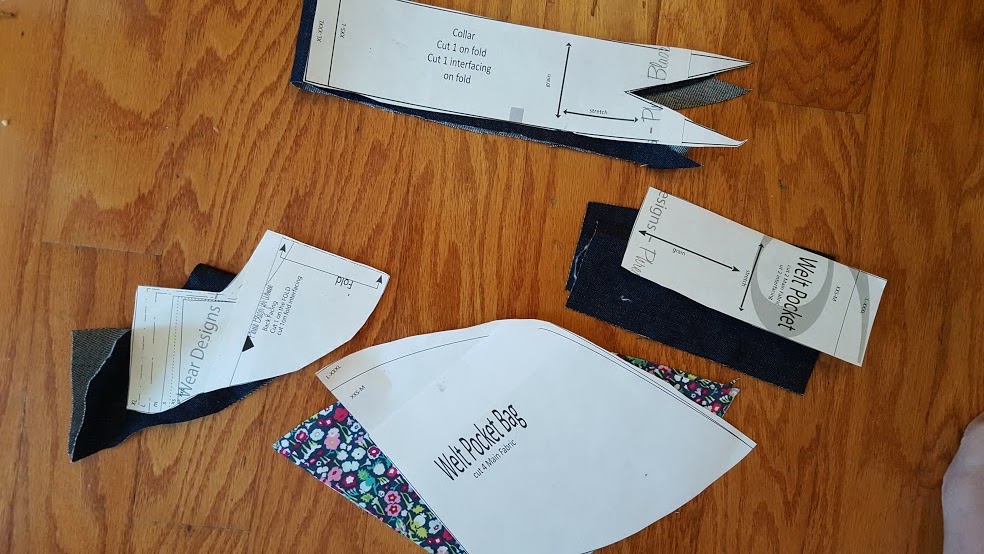 Go ahead and attach interfacing to your collar and welt pocket flap pieces.